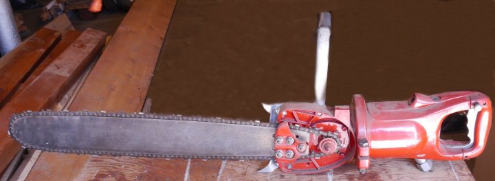 | FOR SALE Vintage REMINGTON PNEUMATIC Chain Saw model 6P serial no. JB125 All housings good. Made to operate under water, requires 1500 fpm of air at 90 psi. Has been stored in dry storage for 50 years. Is in very good condition Made in 1965 4 vane rotary motor. Previously was manufactured by MALL tool company. Has 24 in. bar and chain. Saw available for pick up in Courtenay, B.C. Canada or I can ship at your expense with packing charge. PRICE HAS BEEN SET AT $500.00 for the unit. There is a packaging charge if you want it shipped.
